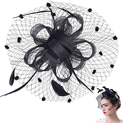 Sombrero tocado pelo elegante pluma clip hat boda coctel malla neto velo diadema para mujer