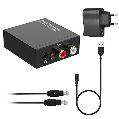 Digital óptico spdif a analógico rca l/r adaptador de audio alimentado
