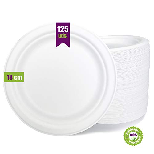 En estos momentos la mejor web donde adquirir Platos desechables biodegradable de papel de caña de azúcar vajilla desechable extrafuertes de color blanco es en la página web de Amazon