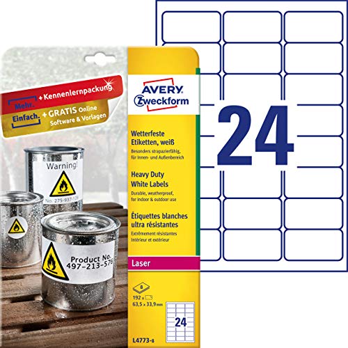 Avery españa l4773-8 -etiquetas blancas resistentes al agua