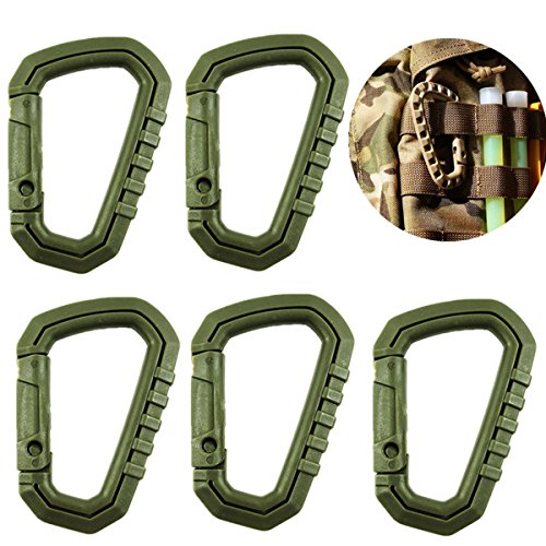 5 piezas llavero gancho mosquetón de plástico forma d para pesca excursiones táctico mochila para colgar verde