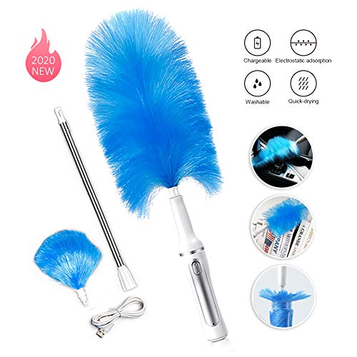 Plumero eléctrico inalámbrico desmontable y lavable giratoria con microfibra de cabeza y poste de extensión
