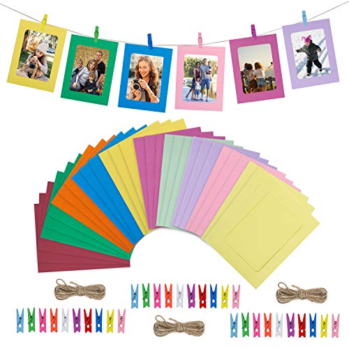 Marco de fotos de papel de bricolaje decoración de la pared del hogar fotos álbum colgante con cuerda y clip 30 piezas 10 colores