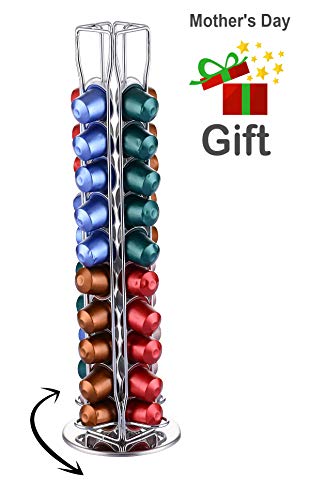 En estos momentos la mejor web donde adquirir Soportes para cápsulas de café nespresso-40 piezas café 360 grados giratorio cápsulas-cromo plateado elegante con acero inoxidable 11.5x11.5x39cm accesorios de la mesa/cocina es en la página web de Amazon