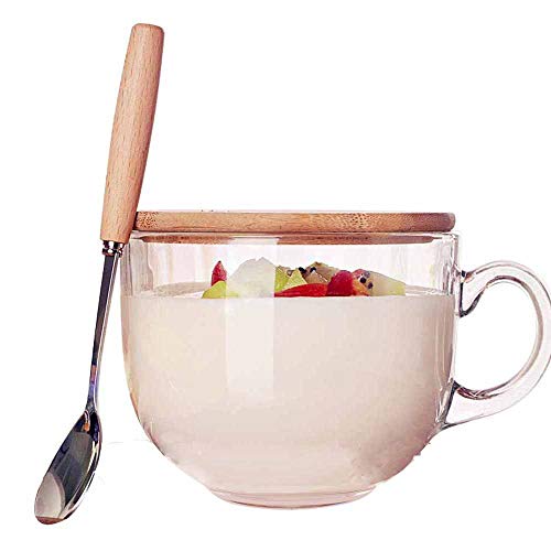 470ml copa de cristal para microondas con tapa de madera
