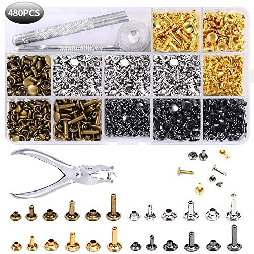 Remaches de cuero 480 piezas remache de doble tapa 3 tamaños con kit de herramienta de fijación para artesanía de cuero reparación de decoración 4 color