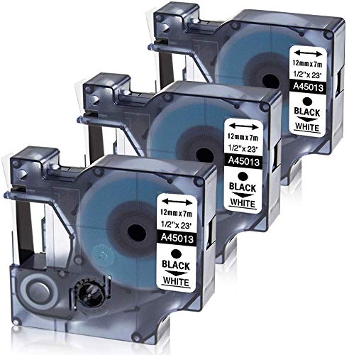 Casete de cinta compatible para usar en lugar de dymo d1 45013 s0720530 12mmx7m negro sobre blanco