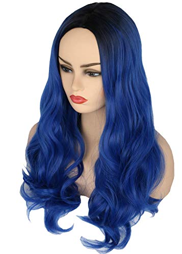 Larga ondulada azul peluca para disfraz de halloween carnaval fiesta