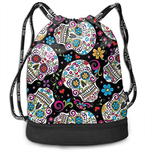 Drawstring bag flower sugar skull shoulder bags travel sport gym bag print