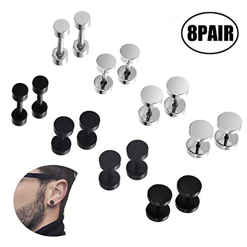 Juego de 8 pares de pendientes de acero inoxidable para hombre color negro plata?3mm 5mm 6mm 8mm?