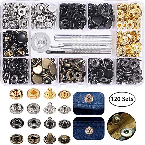 Juego de 120 broches de presión de metal con 4 piezas de herramientas de fijación para decoración de ropa