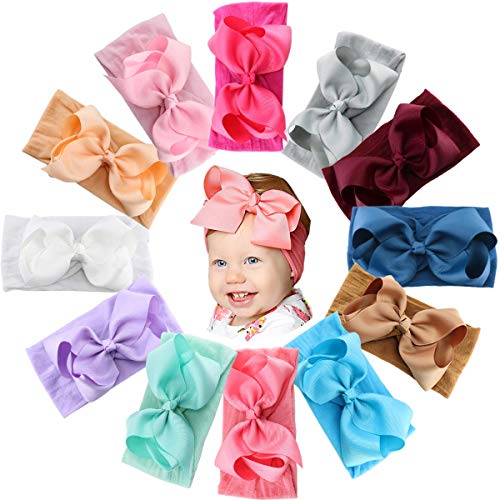 12 diademas para bebé con lazos anchos