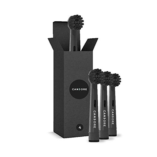 Cepillo de dientes black carbon infused by candore – juego de 4 – 100% reciclables – blanqueamiento natural – compatible con su cepillo de dientes oral-b