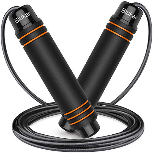 Blukar cuerda saltar comba con mango antideslizante de espuma suave cuerda ajustable libre y rodamientos de bolasde rápidos para fitness