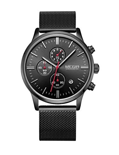 El precio de venta de Malla banda relojes moda luminoso 6-mano analogico cronógrafo 3atm resistente al agua cuarzo relojes se ha mantenido estable en en los últimos tiempos, no ha habido ningún cambio. En cuanto a ofertas en este producto de megir, el precio de es similar en todas las tiendas de la red, sin haber grandes diferencias.