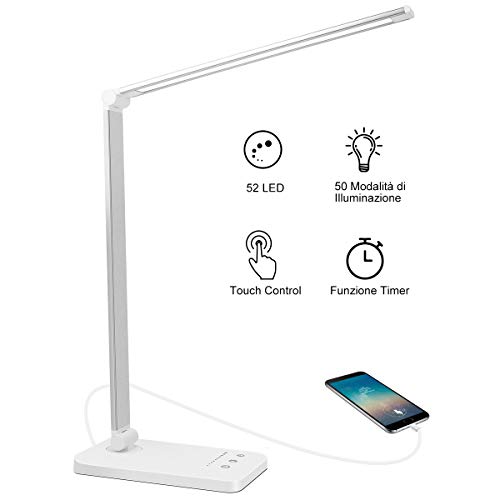Auelek lámpara de mesa recargable plegable ajustable 10 luminosidad u00d7 5 modos de iluminación regulable y puerto de carga usb