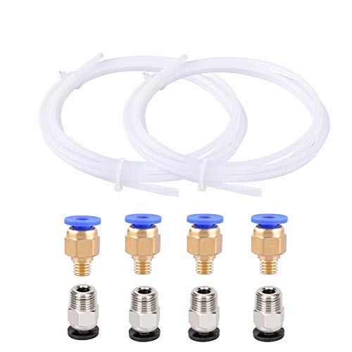 2pcs ptfe bowden tube id2mm od4mm with 4pcs pc4-m6 quick fittings and 4pcs pc4-01 straight pneumatic fittings for 1.75mm 3d printer filament feeding set