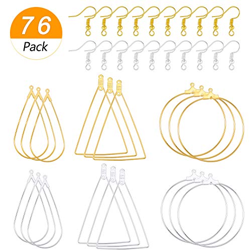 36 piezas de pendientes de aro redondo y triángulo para abalorios con 40 ganchos para pendientes para hacer joyas o aretes