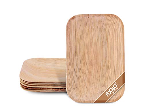 Foogo green 25 bandejas de hoja de palma desechable|25cmx15cm rectangular servir ensalada|postre