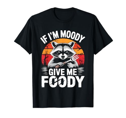 If i'm moody give me foody retro raccoon camiseta