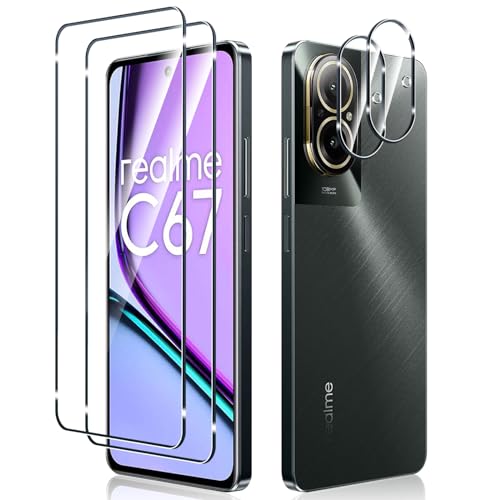 2 piezas protector de pantalla para realme c67 4g con 2 piezas protector de lente de cámara