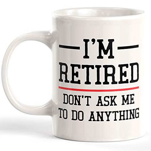 Taza de café con texto en inglés i i'm retired don't ask me to do anything de 325 ml