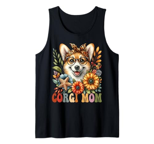 Corgi mom dog lover día de la madre retro flor mujer camiseta sin mangas