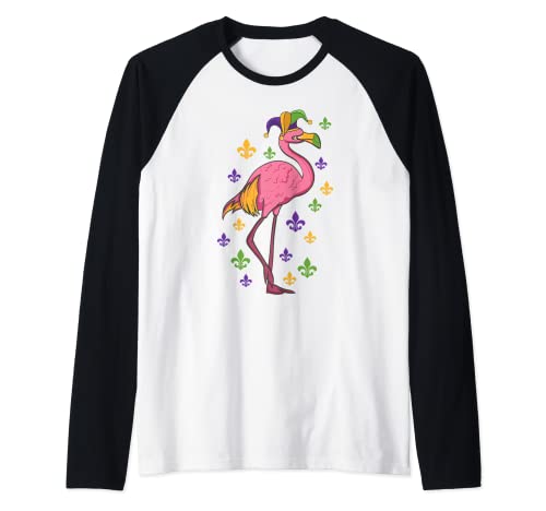 Carnaval de mardi gras flamingo festival cajún de nueva orleans camiseta manga raglan