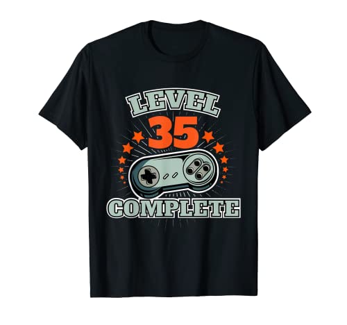 Nivel 35 completa gamer 35 aniversario cumpleaños juegos camiseta