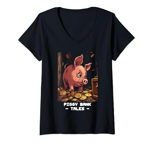 Mujer piggy bank tales camisa divertida efectivo y animal camiseta cuello v