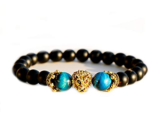 Você já conhece o Pulseira de contas coroa de leão pedra de onix e olho de tigre?